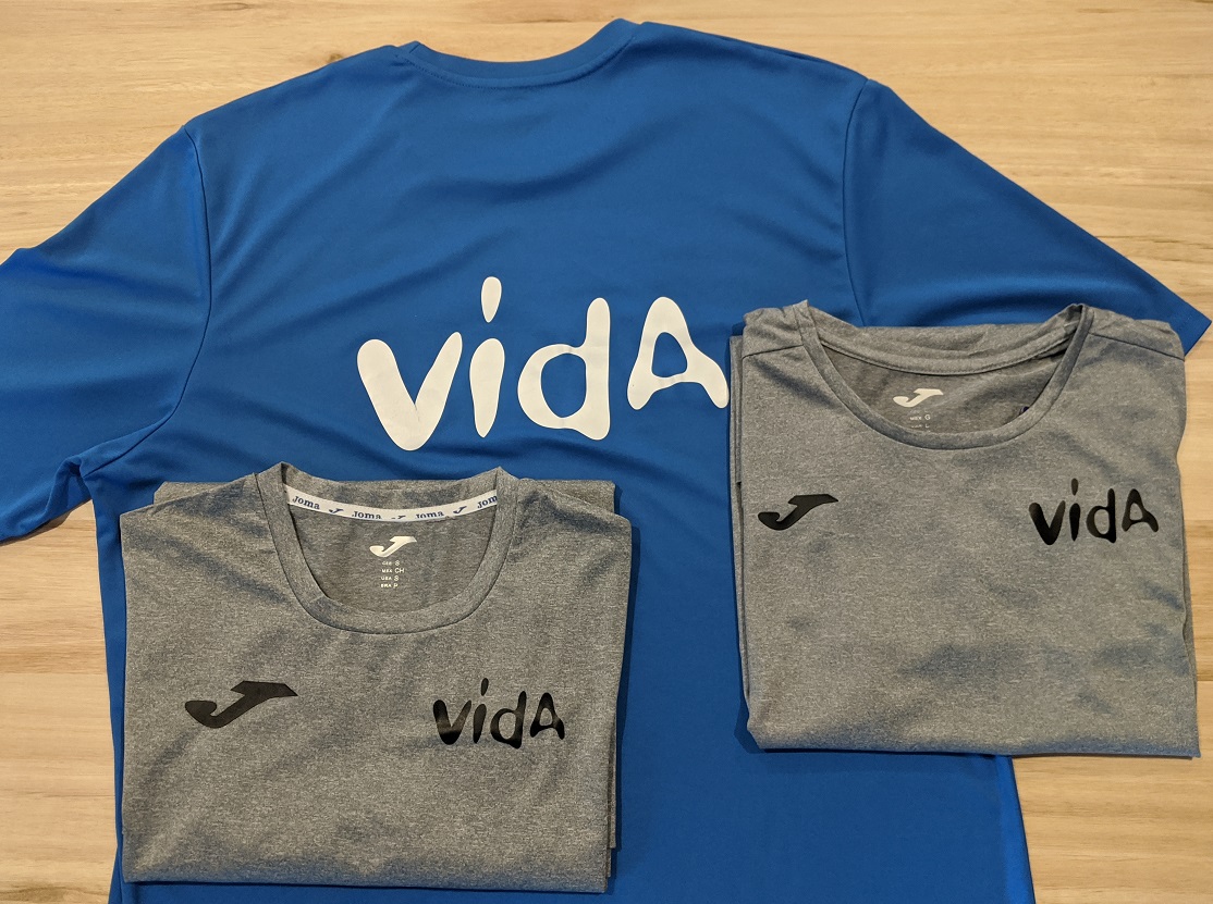 Vida Workout T-shirts come in both mens & womens styles and are available in grey or blue!
